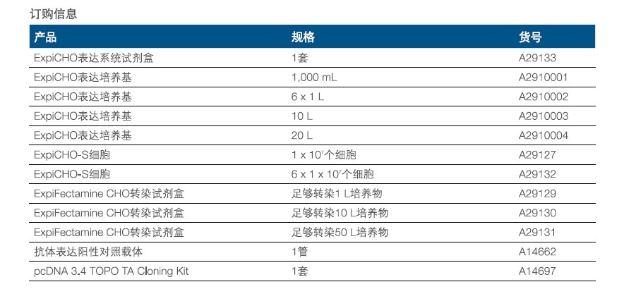 ?????????? l 1套Gibco ExpiFectamine CHO 轉(zhuǎn)染試劑盒,足夠轉(zhuǎn)染1升培養(yǎng)物
